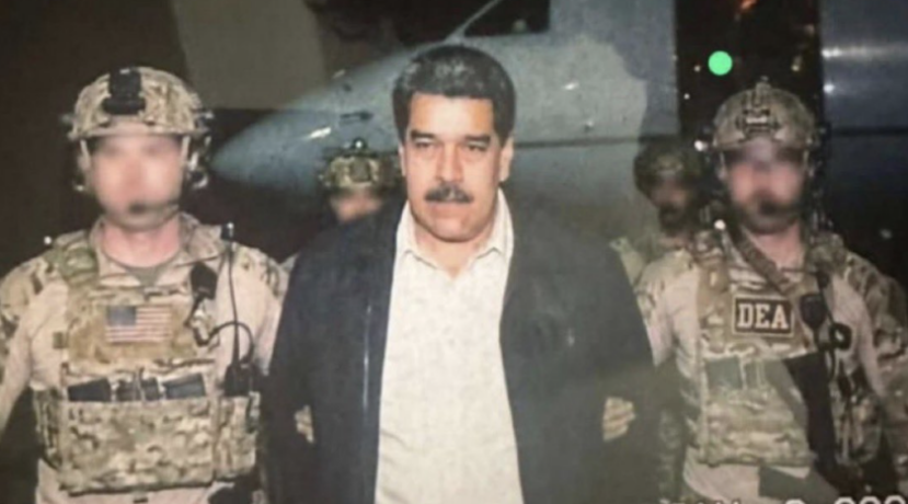 Photomontage viral représentant le président Maduro escorté par deux agents US