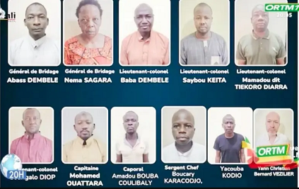 Les différentes personnes interpellées citées par la télévision nationale sont : le général de brigade Abass Dembélé, le général de brigade Nema Sagara, le lieutenant-colonel Baba Dambélé, le lieutenant-colonel Saibou Keïta, le lieutenant-colonel Mamadou dit Tiékoro Diara, le lieutenant-colonel Sungalo Diop, le capitaine Mohamed Ouattara, le caporal Amadou Bouba Coulibaly, le sergent-chef Boukari Karakodjo, Yakouba Kodjo. Parmi elles, un étranger de nationalité française répondant au nom de Yann Christian Bernard Vizilier. Il a participé activement à l’opération déjouée avec succès par les services spécialisés, martèle l’ORTM.