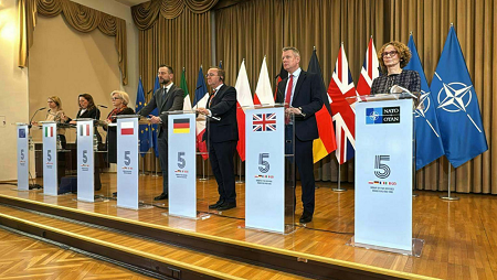 Ce vendredi (20 février 2026), la secrétaire générale déléguée de l’OTAN, Radmila Shekerinska, s’est jointe au Groupe européen des Cinq (E5) à Cracovie (Pologne) pour parler des efforts visant à renforcer la sécurité euro-atlantique et le dispositif de dissuasion et de défense de l’OTAN, ainsi que des menaces hybrides et du soutien à l’Ukraine. Assistaient à la réunion les représentants de la France, de l’Allemagne, de l’Italie, de la Pologne, du Royaume-Uni et de l’Union européenne.