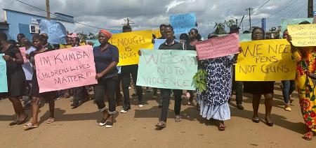 Des Camerounais anglophones manifestent après que des hommes armés ont ouvert le feu sur une école, tuant au moins six enfants à Kumba, au Cameroun, le 25 octobre 2020. © 2020 Reuters/Josiane Kouagheu